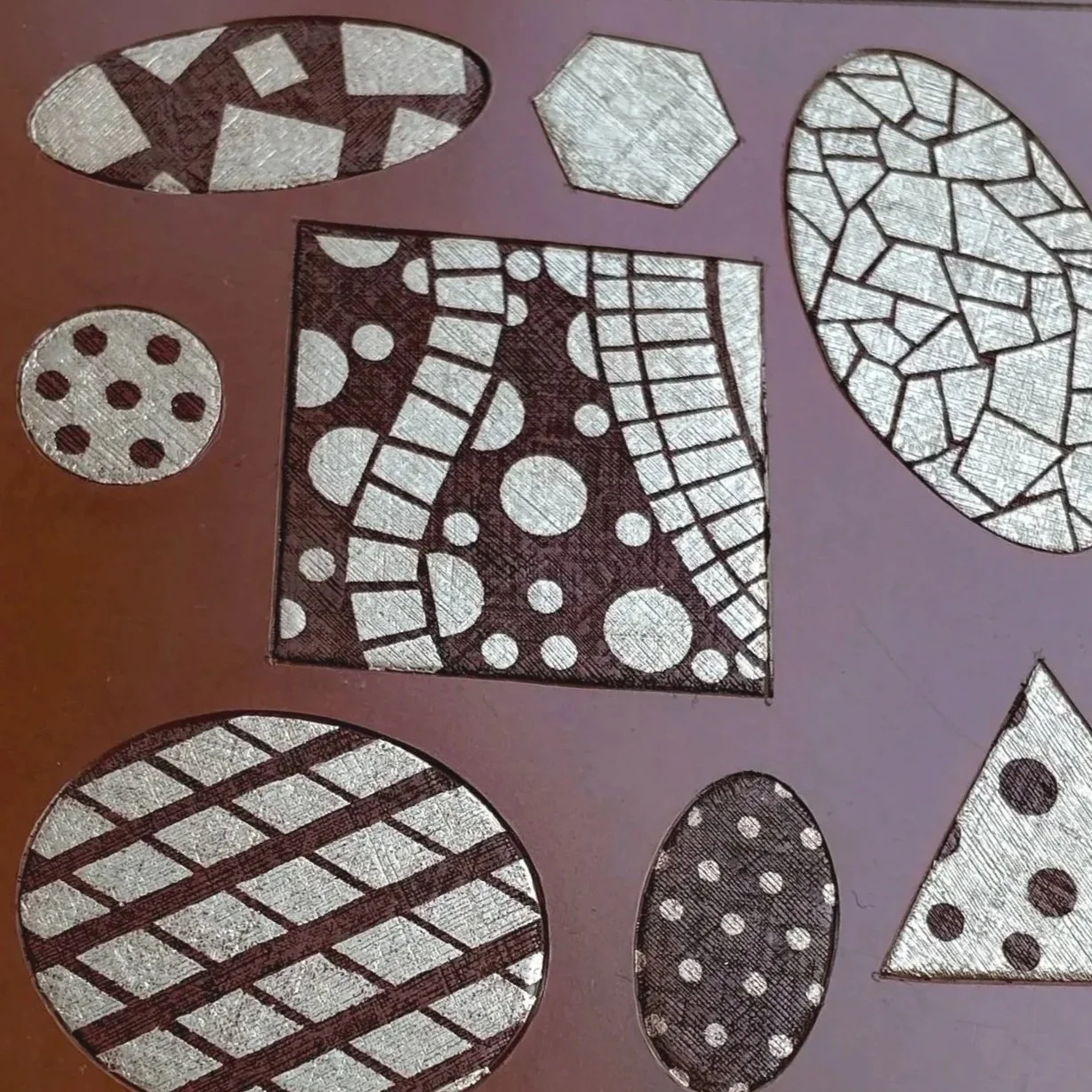 A metal inlay technique where you cut texture into the surface and press metal foil into it. The result is a flat, gentle surface, similar to fabric or paper pasted onto metal. By inlaying silver or gold foil into the surface of a metal plate, this technique allows for decorative expressions that highlight contrasts in color and texture. Even without the use of gemstones, combining different metals alone can add depth and a sense of richness to the work.